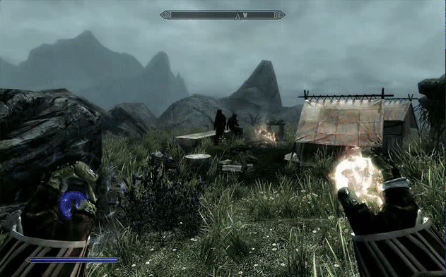 While the flame of ‘Slow Burn’ does not burn particularly hot, the fire is persistent and will remain on the victim for much longer than any standard fire-spell. The victim will lose health as long as the fire is burning their body, making this spell rather efficient in the long run.