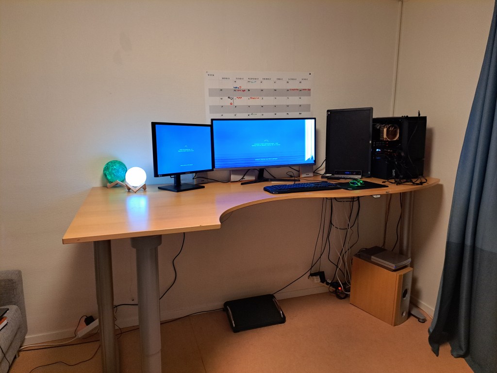 Ett klassiskt höjbart skrivbord från Kinnarps.